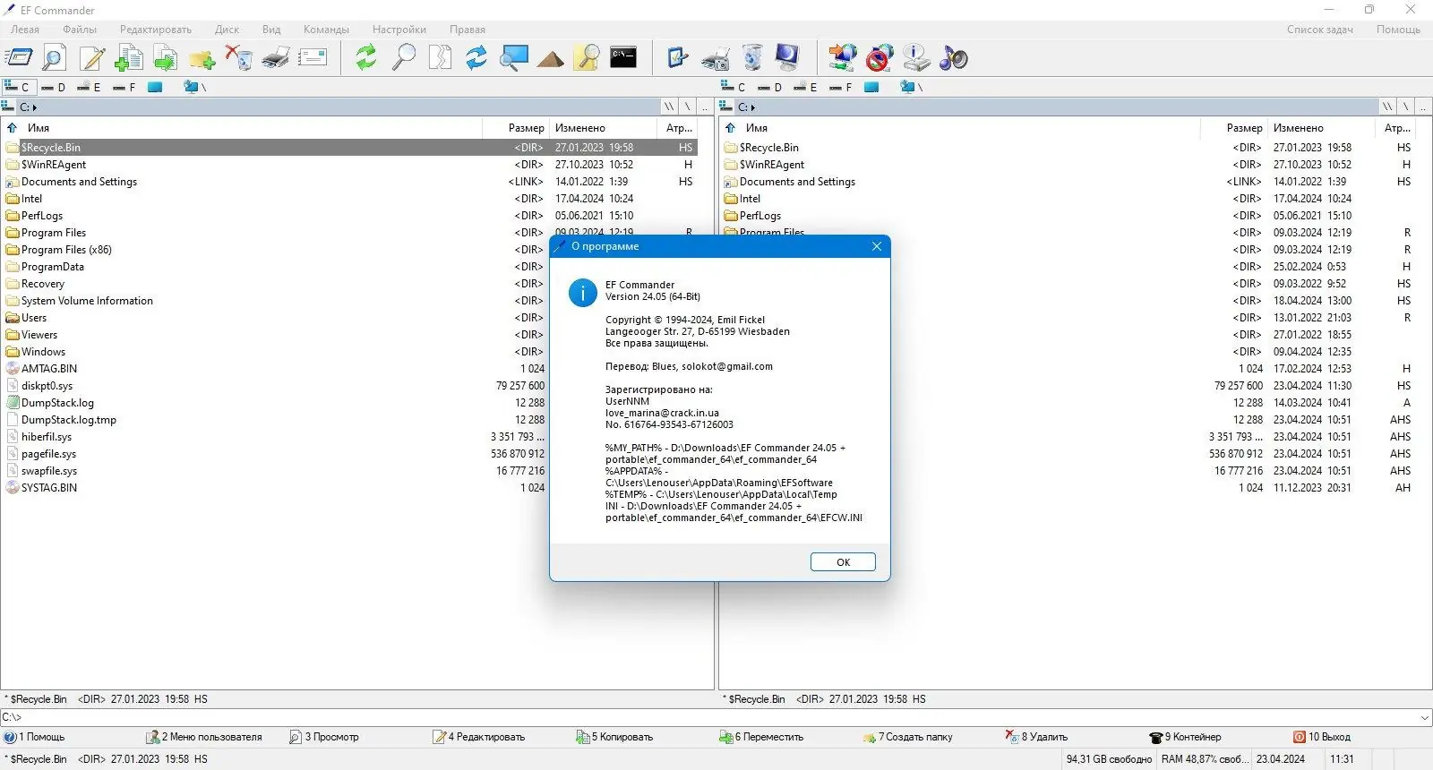 EF Commander доступен в установочной и портативной версиях, что позволяет использовать его как на стационарных, так и на мобильных устройствах. Портативная версия не требует инсталляции и может запускаться с флеш-накопителя. Обе версии полностью функциональны и поддерживают все основные возможности программы. Процедура активации включает использование генератора лицензий, который создаёт файл EFCW.LIC для полного доступа к функциям. Программу можно скачать на странице.