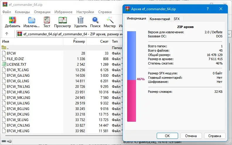 EF Commander доступен в установочной и портативной версии для 32- и 64-битных систем Windows. Обе версии полностью функциональны и поддерживают русский язык. Программа совместима с современными операционными системами и не требует сложной настройки после запуска.