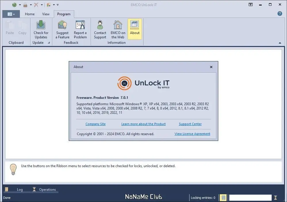EMCO Unlock IT — бесплатная утилита для разблокировки файлов и папок, заблокированных системными или сторонними процессами. Программа помогает устранить ошибки доступа, позволяет завершать устойчивые процессы и восстанавливать контроль над ресурсами системы. Поддерживает интеграцию с проводником Windows и работает с различными типами блокировок.