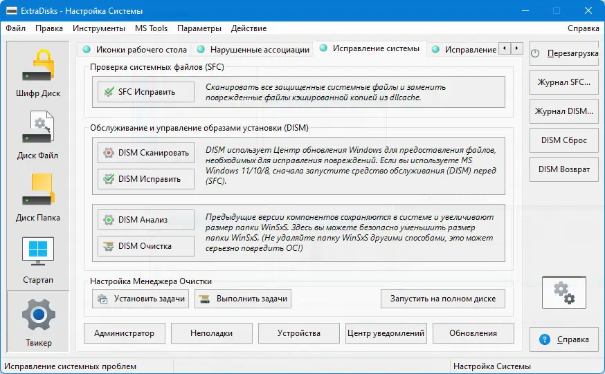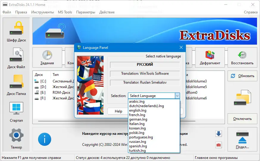 ExtraDisks сочетает в себе функциональность нескольких утилит, предлагая пользователям единое решение для управления дисками и системой. Программа регулярно обновляется, что подтверждается подробным журналом изменений. Поддержка множества языков, включая русский, и совместимость с современными версиями Windows делают её доступной для широкой аудитории. Визуальный интерфейс минималистичен, но информативен, а каждое действие сопровождается подсказками и подтверждениями. Несмотря на широкие возможности, приложение остаётся легковесным и не нагружает систему.