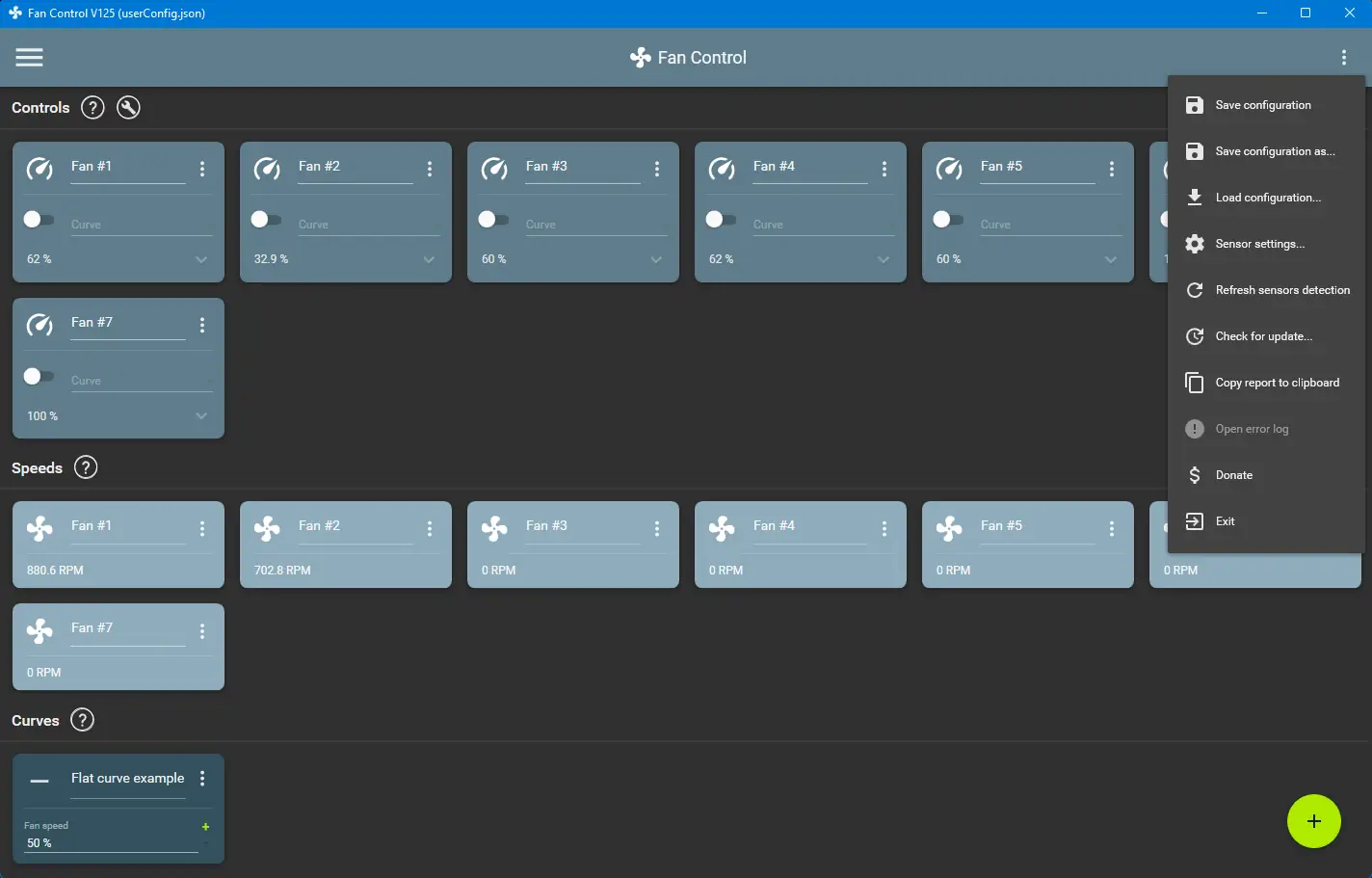FanControl предоставляет полный контроль над системой охлаждения, позволяя настраивать обороты кулеров в зависимости от показаний различных датчиков. Приложение автоматически определяет доступные датчики температуры процессора, видеокарты, материнской платы и жёстких дисков, что упрощает процесс настройки. Поддержка пользовательских датчиков, создаваемых через файлы с расширением *.sensor, расширяет функциональность программы и делает её универсальной для разных конфигураций оборудования.