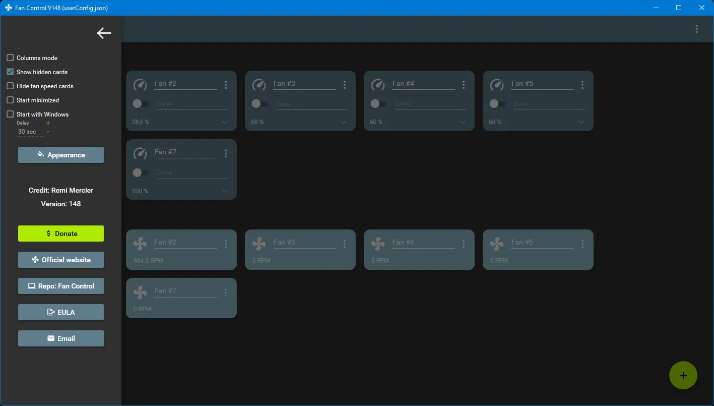 FanControl предоставляет полный контроль над системой охлаждения, позволяя настраивать обороты вентиляторов в зависимости от температуры компонентов. Приложение поддерживает широкий спектр датчиков, включая процессор, видеокарту, материнскую плату и жёсткие диски. Пользователь может строить вентиляторные кривые, задавая зависимость скорости вращения от показаний температуры, что обеспечивает баланс между шумом и эффективностью охлаждения. Программа работает в фоновом режиме и автоматически запускается вместе с операционной системой, обеспечивая постоянный контроль.