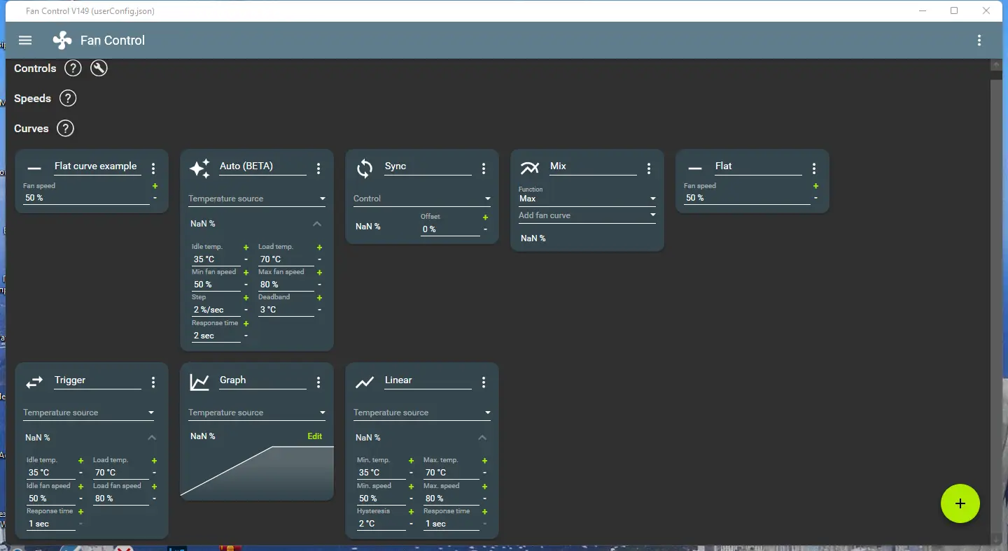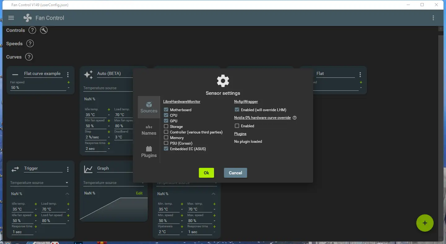 После запуска FanControl пользователь может воспользоваться встроенным мастером настройки, который автоматически определит доступные датчики температуры и подключённые кулеры. Далее создаётся профиль, в котором задаётся зависимость скорости вращения вентилятора от температуры конкретного компонента. Каждая кривая настраивается графически, что упрощает процесс калибровки. После сохранения профиля программа начинает автоматически регулировать обороты в реальном времени.