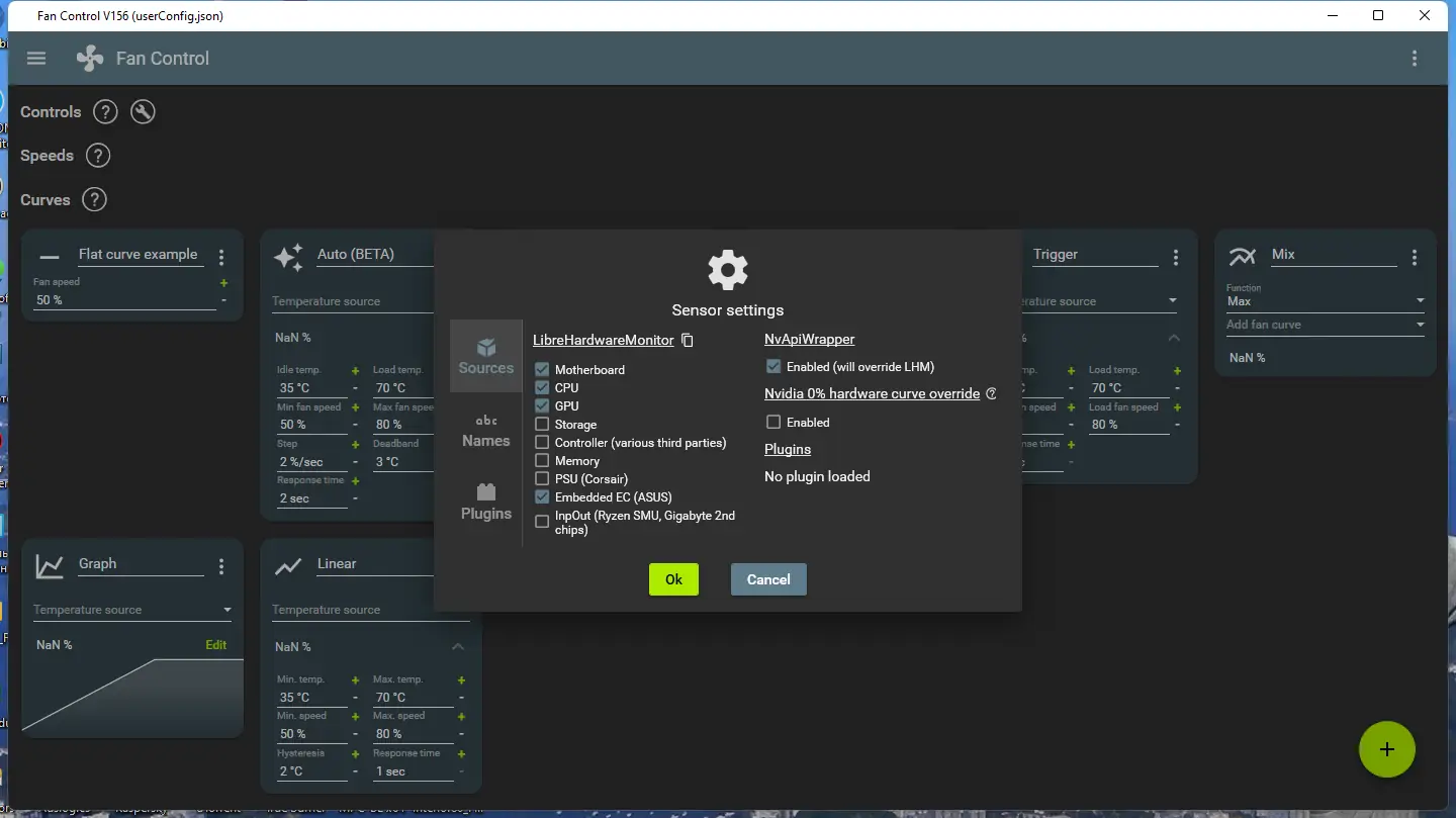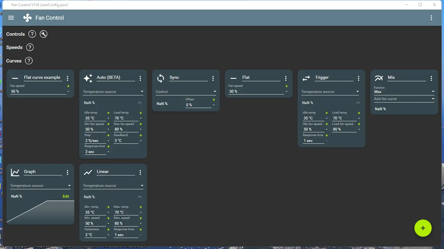 - Возможность построения вентиляторных кривых на основе показаний датчиков.
