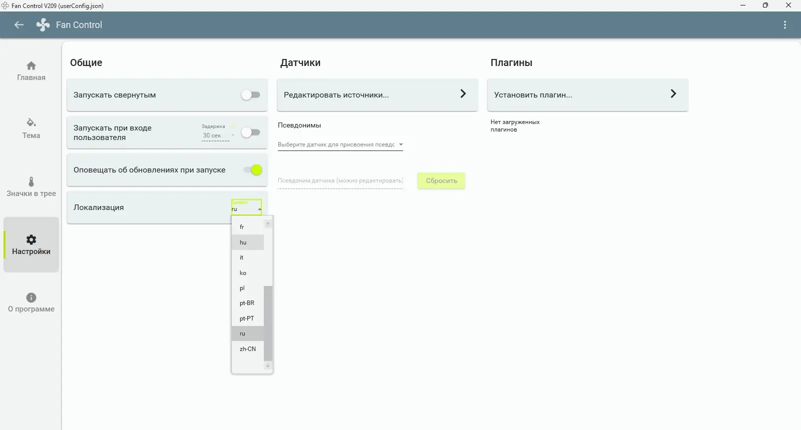 - Поддержка пользовательских датчиков через файлы с расширением *.sensor.