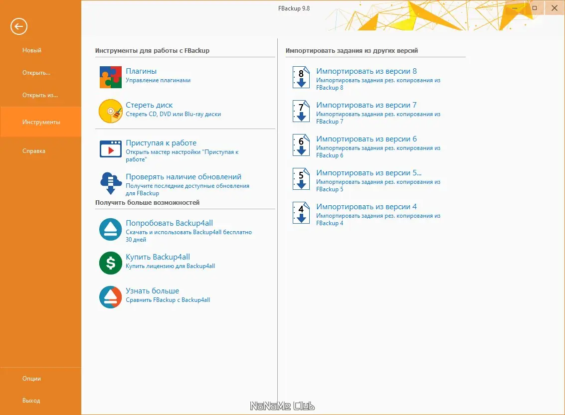 - Встроенные мастера для создания и восстановления резервных копий, минимизирующие количество необходимых действий.
