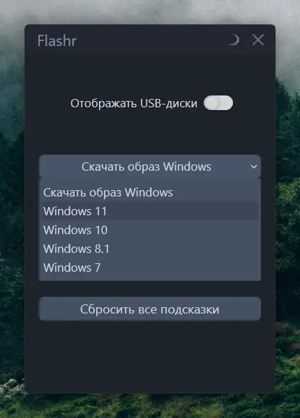 Flashr — это компактная утилита для создания загрузочных флешек с официальными образами Windows. Программа автоматизирует загрузку, проверку и запись ISO-файлов, обеспечивая простоту и надёжность при настройке установочных носителей.