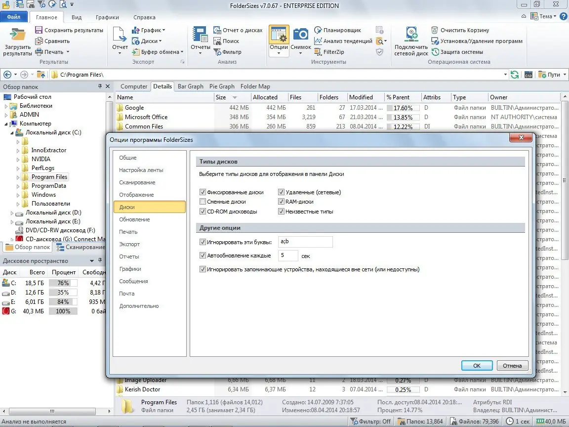 Работа с FolderSizes