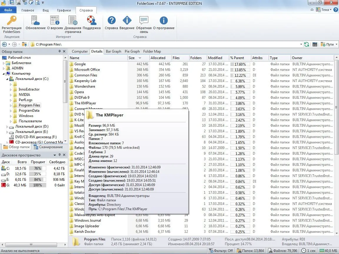 FolderSizes представляет собой системную утилиту, предназначенную для глубокого анализа файловой системы. Она сканирует жесткие диски, съемные носители и сетевые ресурсы, определяя объём данных в каждой директории. Результаты отображаются в виде иерархической структуры, что упрощает навигацию и поиск проблемных папок. Программа поддерживает многопоточную проверку, что обеспечивает высокую скорость анализа даже на накопителях большого объёма.