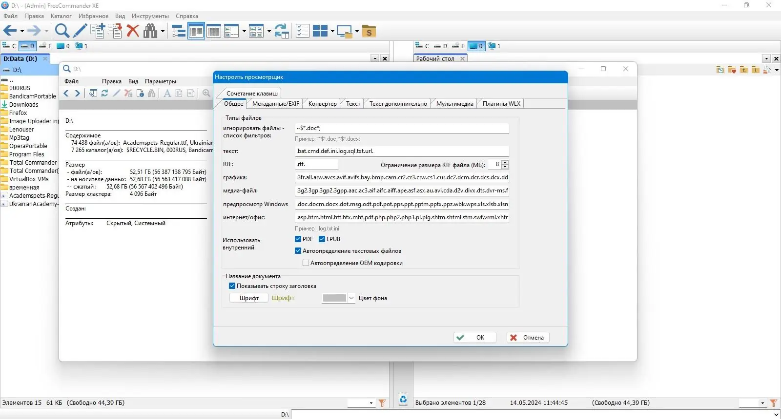 - Встроенный просмотр файлов в различных форматах, включая текстовые, графические и шестнадцатеричные.