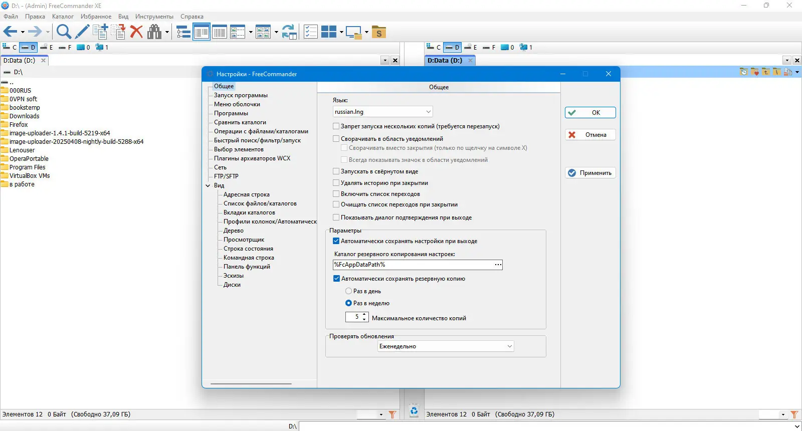 Программа поддерживает гибкую настройку интерфейса и поведения операций, включая выбор между системными и собственными методами копирования файлов.