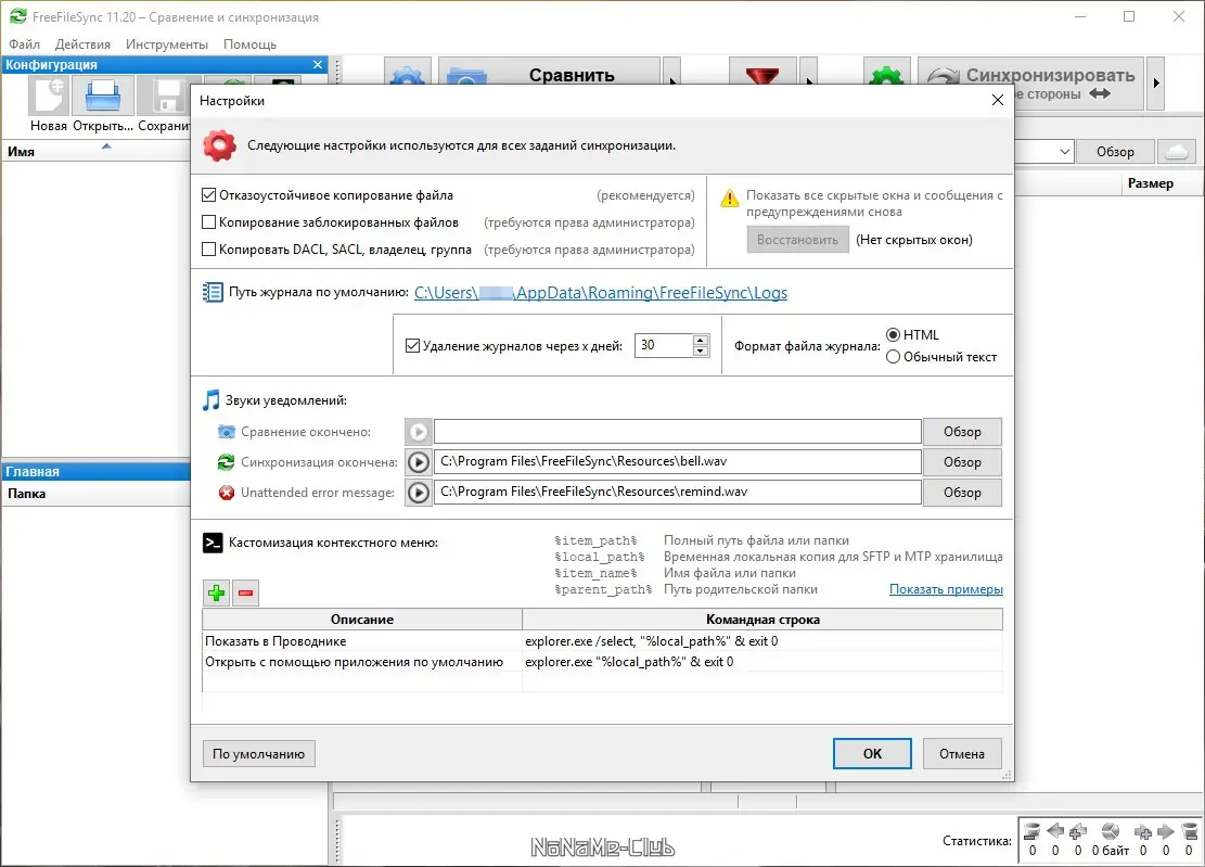 Работа с FreeFileSync