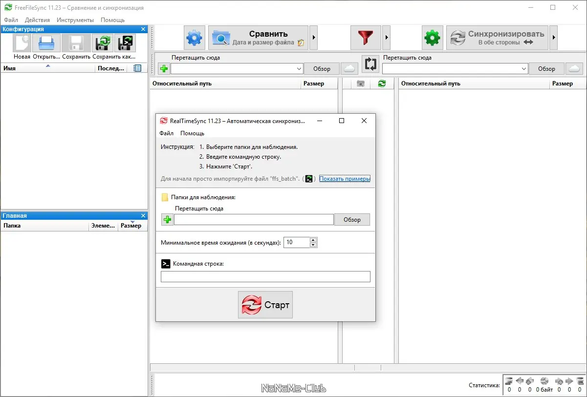 - Программа предлагает несколько режимов синхронизации, включая зеркальное копирование, обновление и двустороннюю синхронизацию.