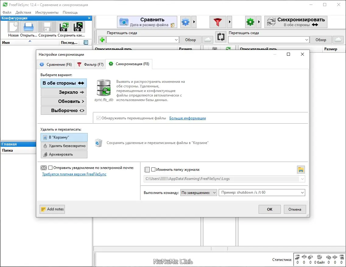 - Поддержка различных режимов синхронизации: двусторонняя, зеркальная, обновление и ручной режим.