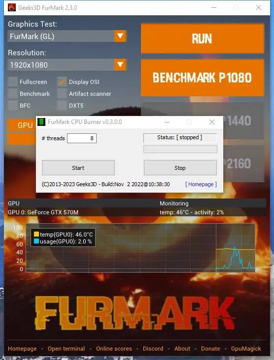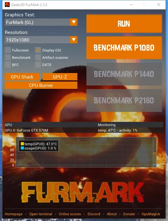 FurMark — это мощная утилита для стресс теста видеокарт, разработанная для оценки производительности и стабильности графических процессоров. Программа создает высокую нагрузку на GPU с помощью специализированных 3d-сцен, поддерживая современные API, такие как OpenGL и Vulkan. Подходит как для тестирования охлаждения, так и для проверки системы после разгона.