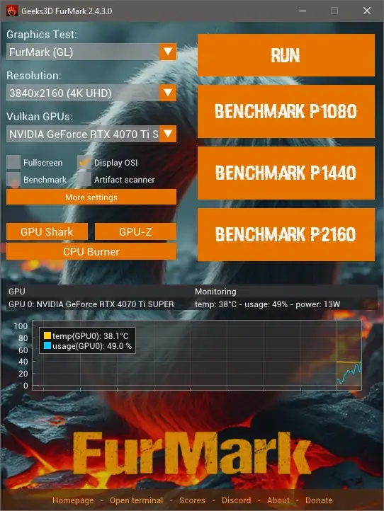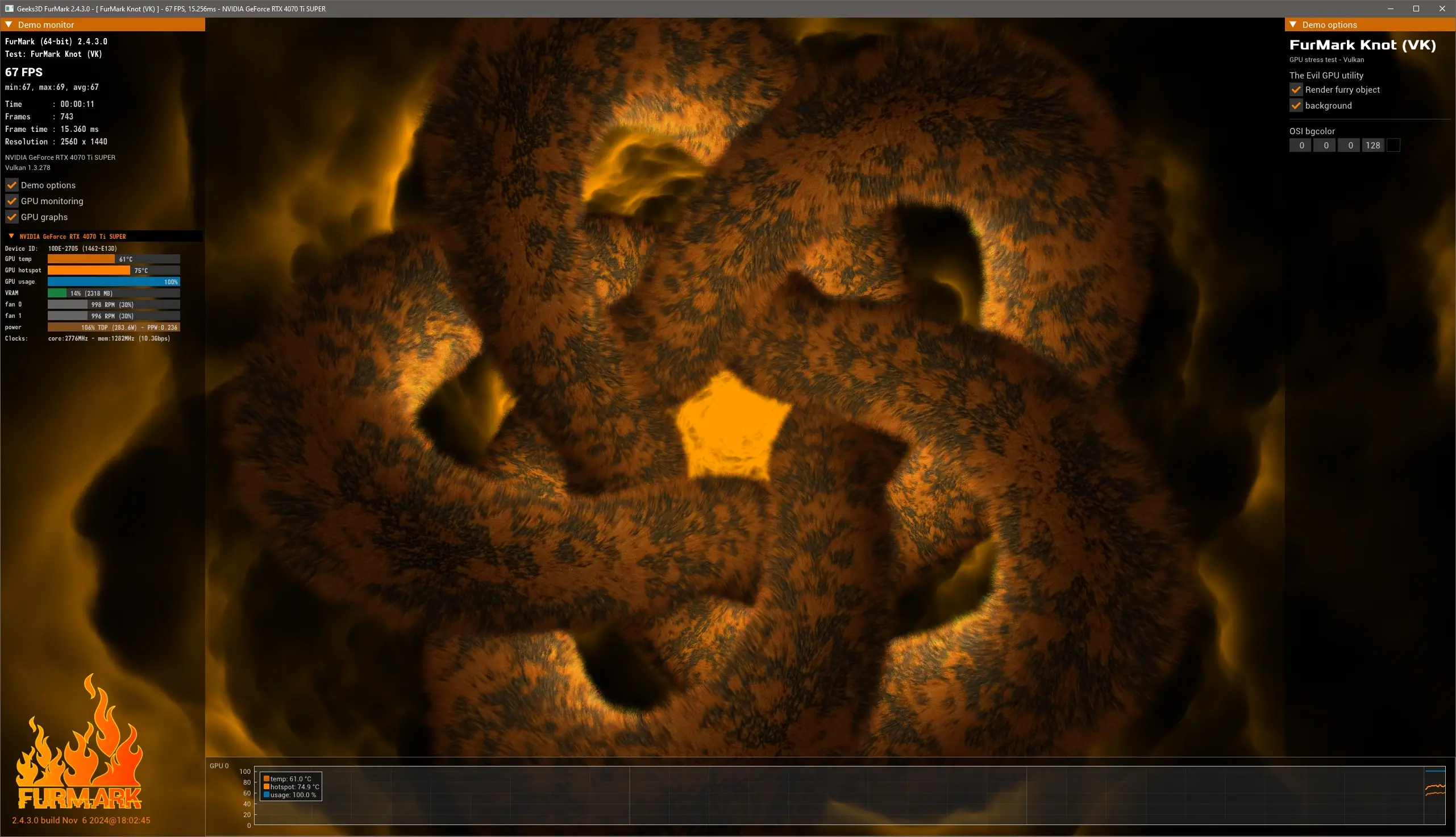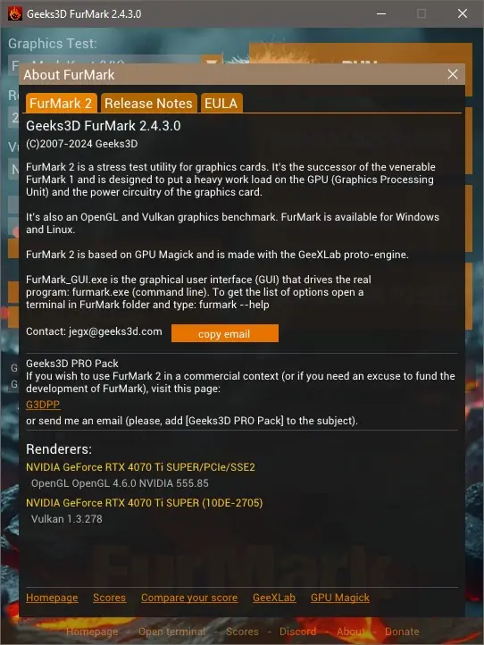 Программа FurMark 2 — это мощный инструмент для стресс-тестирования видеокарты, обеспечивающий высокую нагрузку на GPU с использованием технологий OpenGL и Vulkan. Она позволяет оценить стабильность работы графического адаптера, особенно при разгоне, а также проверить эффективность системы охлаждения. Подходит как для опытных оверклокеров, так и для пользователей, желающих протестировать производительность своего оборудования.