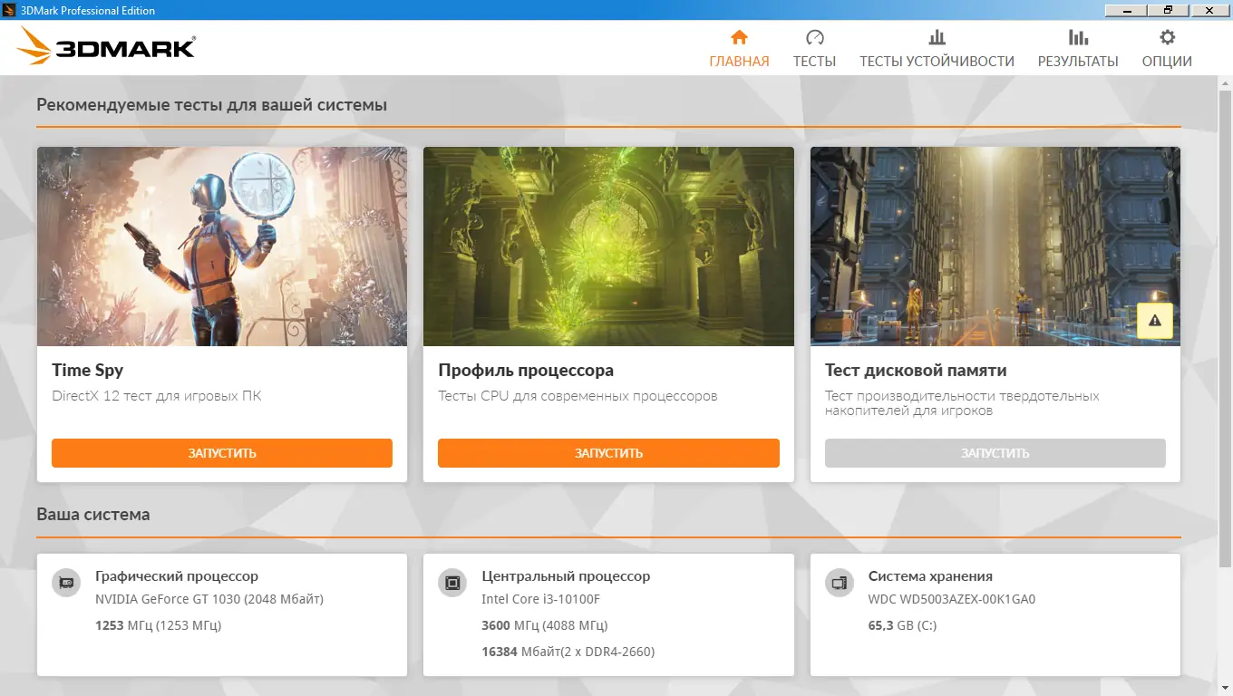 Работа с Futuremark