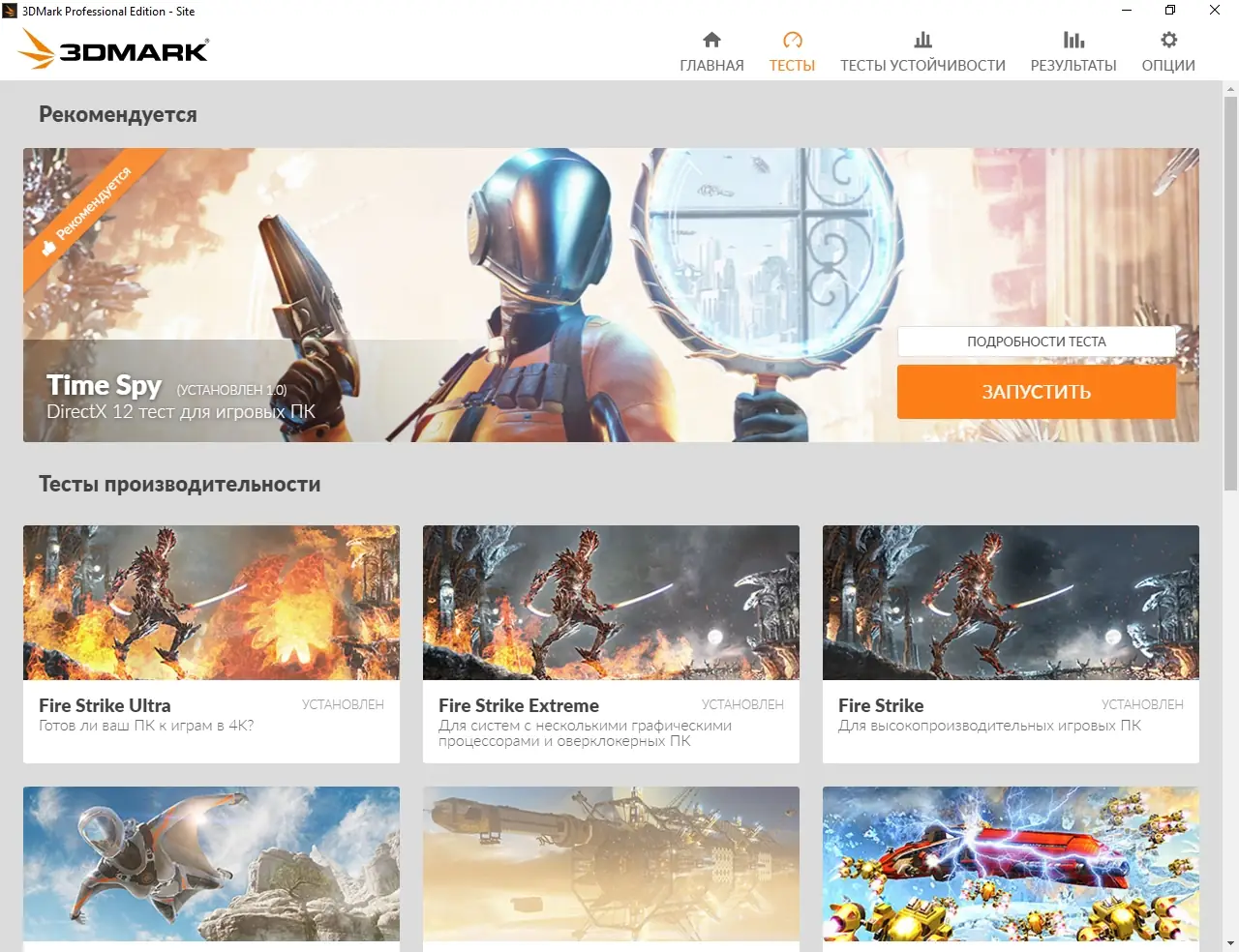 Futuremark — это пакет инструментов для тестирования производительности компьютерного оборудования, ориентированный в первую очередь на оценку возможностей системы в играх. Основной компонент пакета — 3dmark — позволяет проводить комплексные испытания графики, процессора и общей стабильности системы на разных платформах и разрешениях, включая 2K, 4K и даже 8K. Программа подходит как для обычных пользователей, так и для профессионалов, которым важно получить точные данные о производительности.