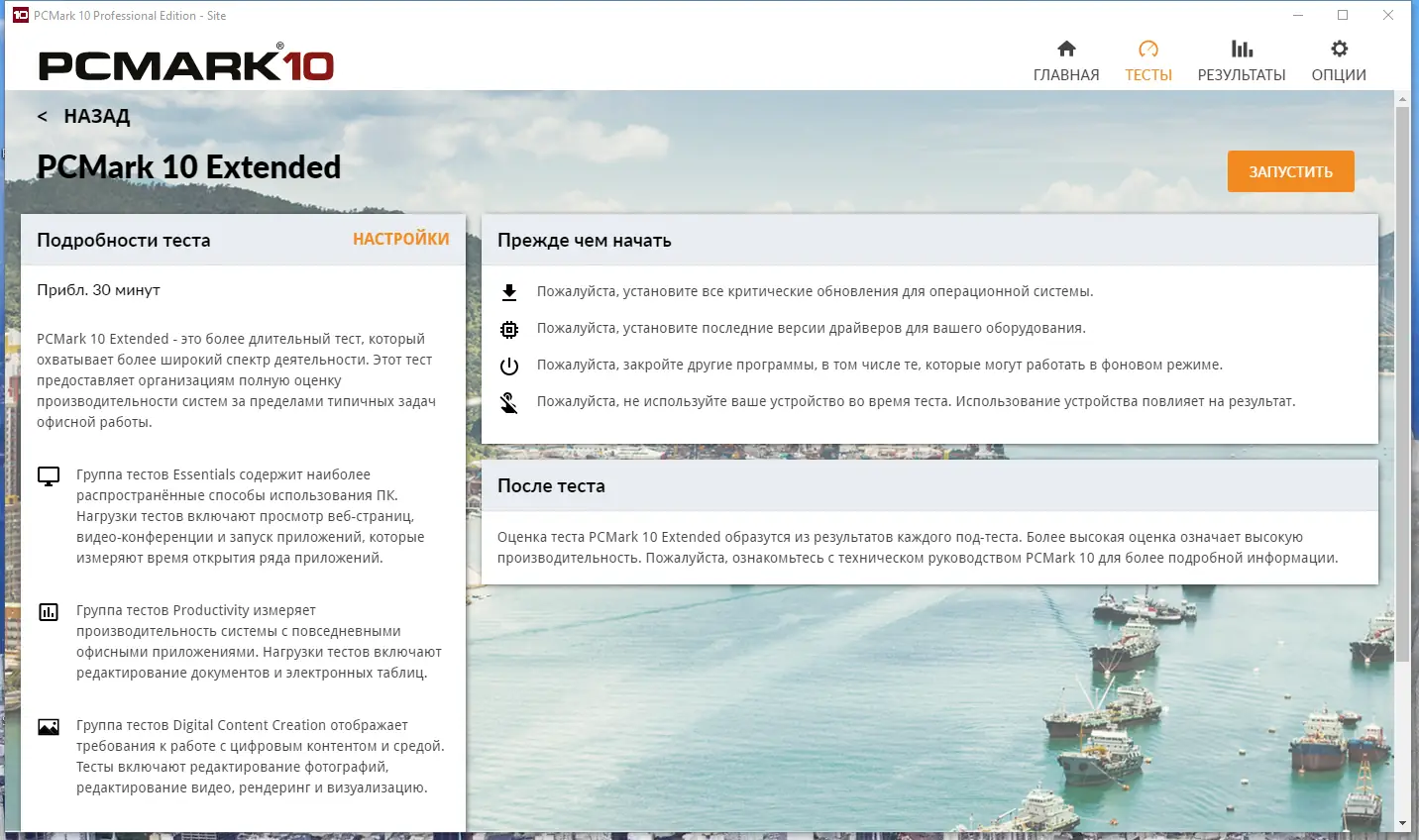 Futuremark PCMark — это современный бенчмарк для всесторонней оценки производительности компьютера, позволяющий протестировать как общую работу системы, так и отдельные компоненты. Программа подходит для пользователей любого уровня и помогает быстро получить точный результат тестирования в различных сценариях использования.