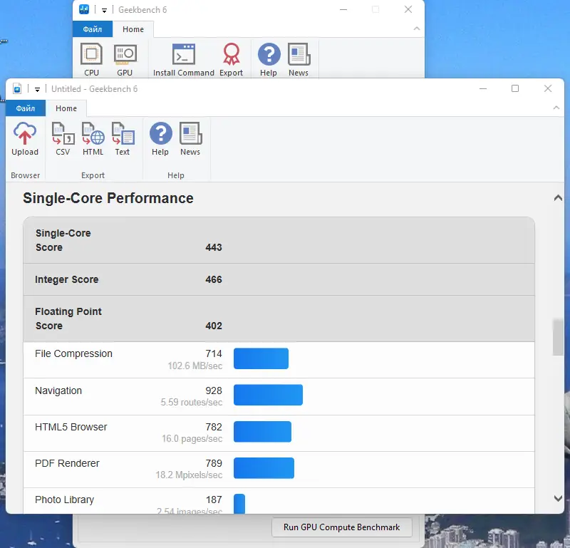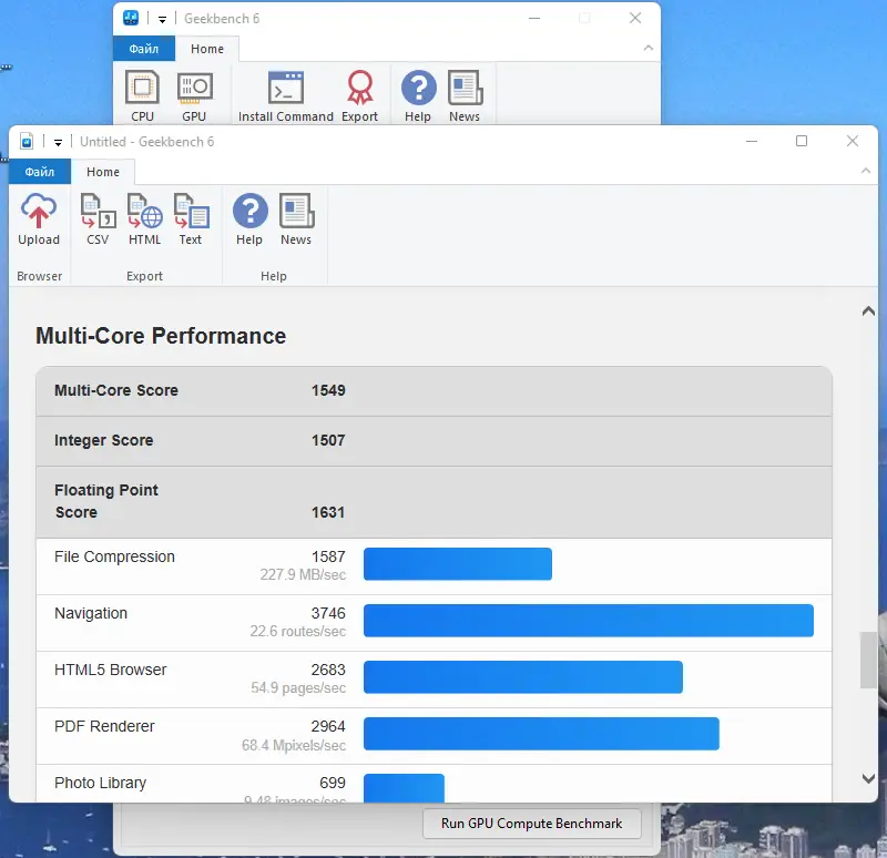 Работа с Geekbench