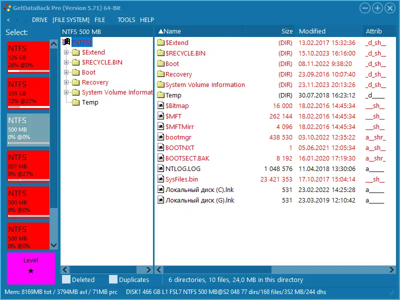 - GetDataBack Pro оснащена продвинутыми алгоритмами анализа, которые автоматически определяют тип файловой системы и выбирают оптимальный путь восстановления.