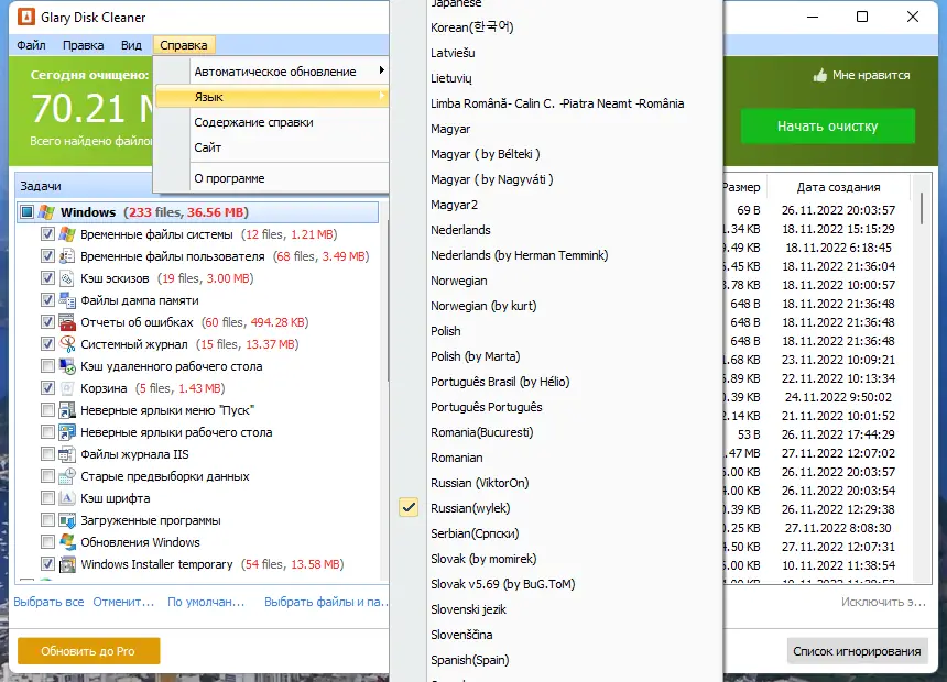 - Поддержка множества типов ненужных файлов, включая кэш браузеров и дампы памяти