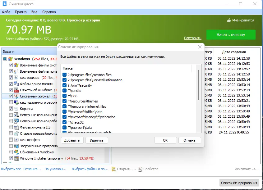 - Очистка временных файлов операционной системы и пользовательских профилей