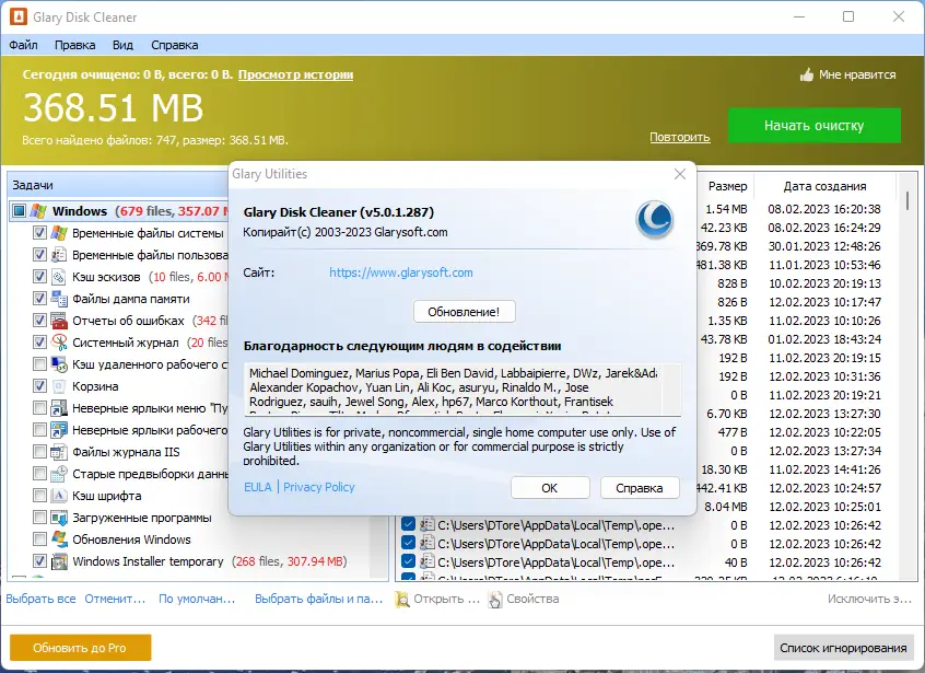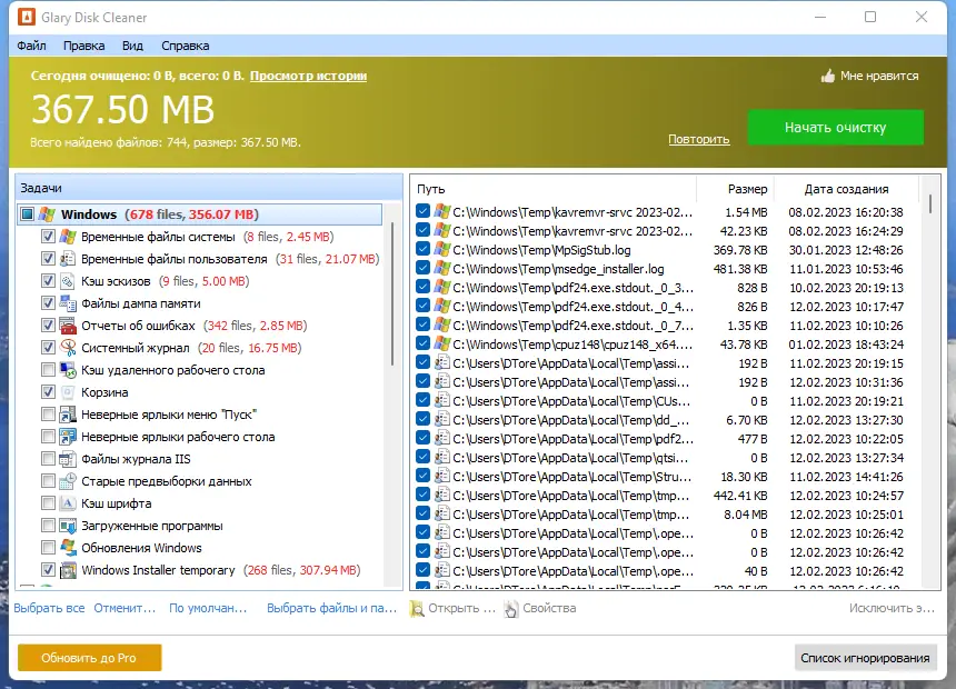 Glary Disk Cleaner — это бесплатное приложение для глубокой очистки системы от временных файлов, кэша, дампов памяти и других видов ненужных данных. Программа помогает быстро освободить место на диске и улучшить общую производительность компьютера.