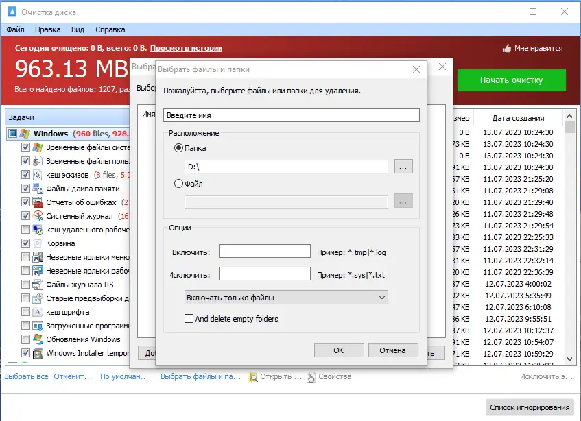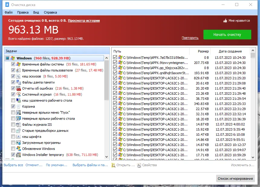 - Утилита сканирует систему на наличие временных файлов, кэша браузеров, дампов памяти и других элементов, не участвующих в работе системы.