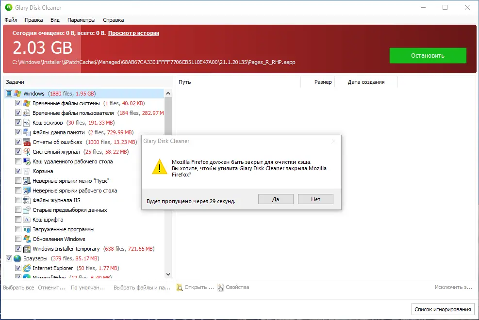 - Удаление временных файлов, созданных в процессе установки программ и обновлений