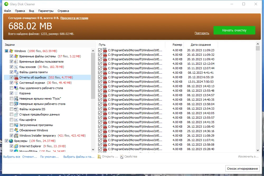 Glary Disk Cleaner сочетает в себе простоту использования и высокую эффективность при очистке системы. Программа быстро находит ненужные файлы, включая те, которые скрываются в скрытых папках или защищённых системных каталогах. Благодаря чёткой структуре отчётов пользователь всегда понимает, что именно будет удалено. В то же время, как и любой инструмент автоматической очистки, она требует внимательного подхода при выборе категорий для удаления, чтобы случайно не затронуть важные данные.