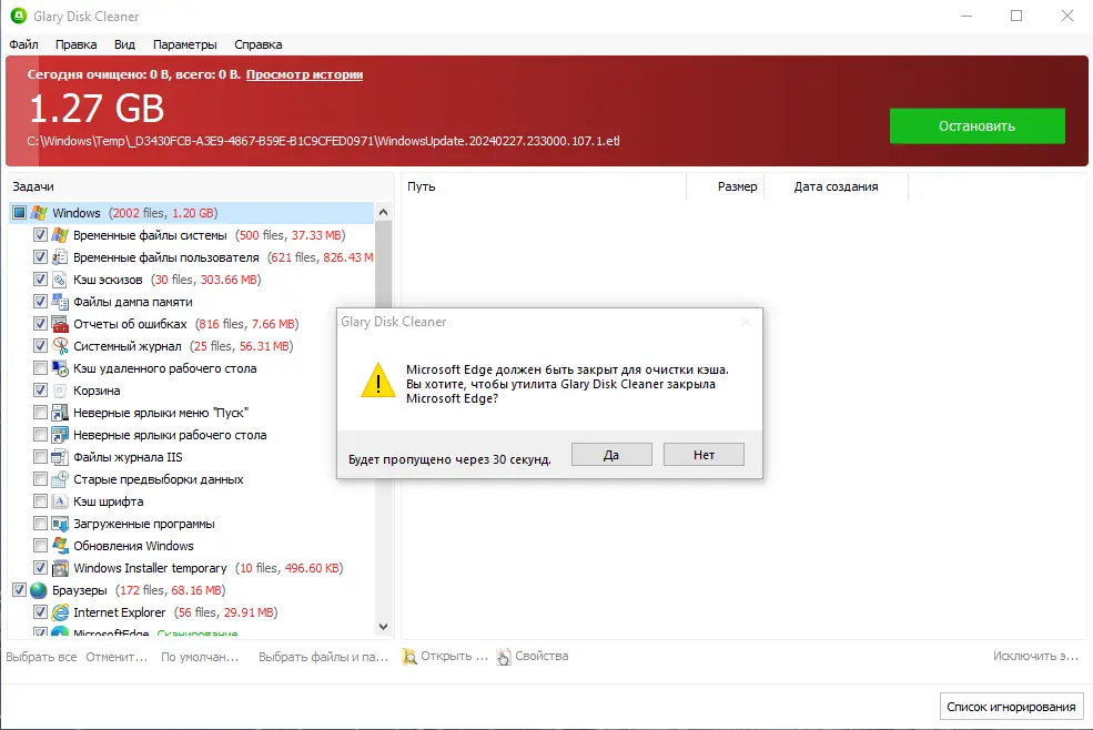 - Очищает кэш веб-браузеров, включая историю, куки и кэшированные изображения.