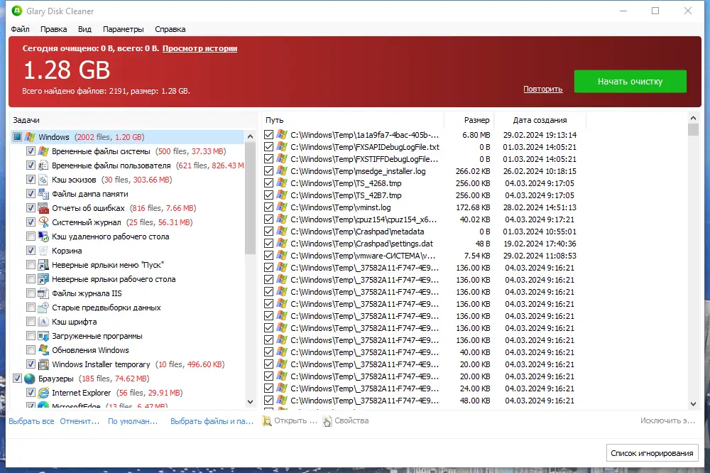 Glary Disk Cleaner эффективно справляется с задачей освобождения места на диске, минимизируя ручное вмешательство пользователя.