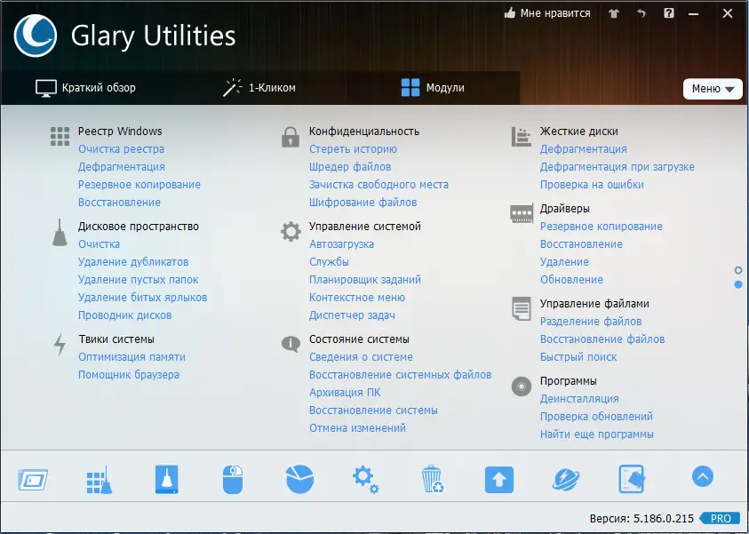 Glary Utilities сочетает в себе простоту использования и высокую эффективность при решении системных задач.