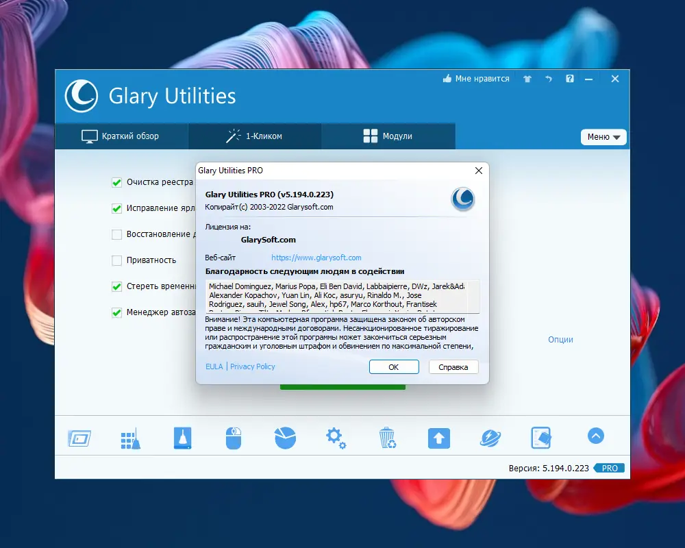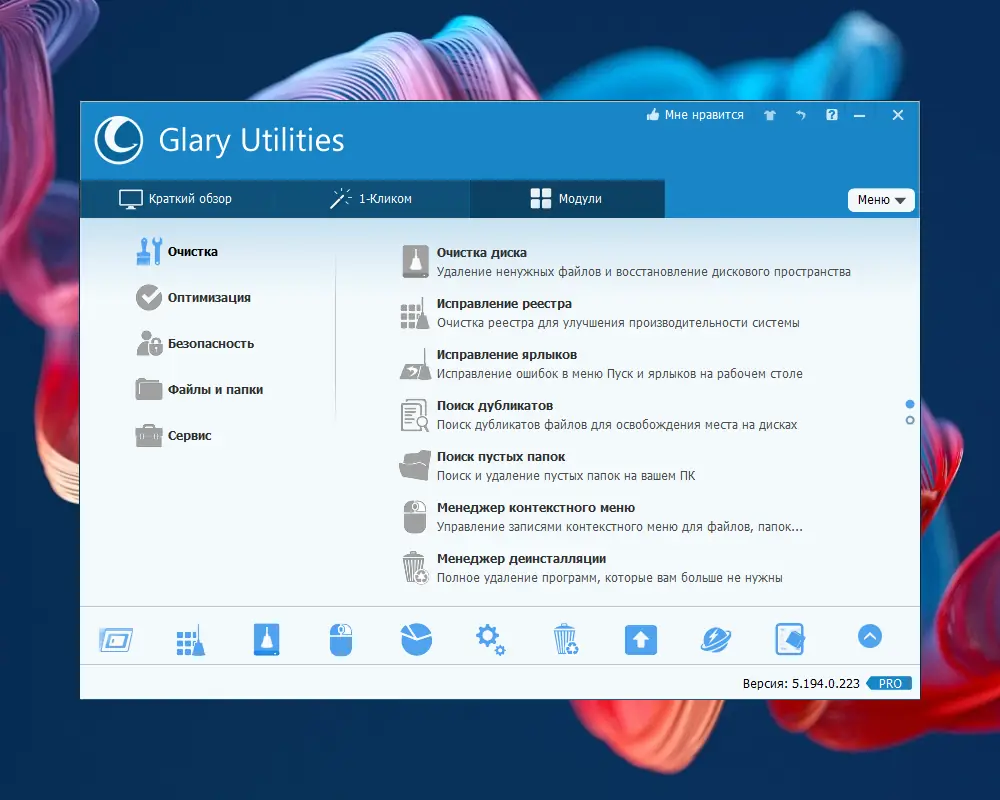 Glary Utilities — это комплексный инструмент для обслуживания и оптимизации операционной системы, объединяющий десятки утилит в одном интерфейсе. Программа помогает очистить диск от мусора, устранить ошибки реестра, управлять автозагрузкой и повысить общую стабильность работы компьютера. Подходит как начинающим пользователям, так и продвинутым, нуждающимся в расширенных настройках системы.