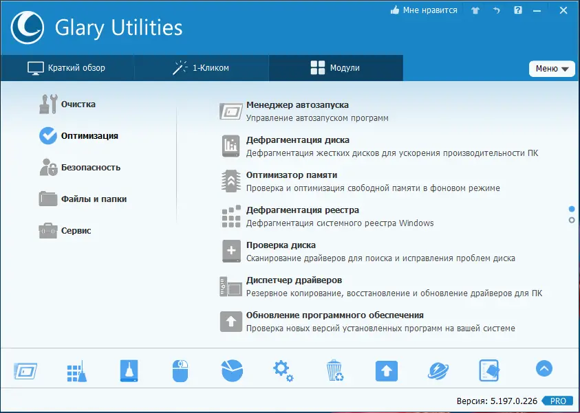 Glary Utilities — это многофункциональная утилита для комплексной оптимизации операционной системы, обеспечивающая очистку дисков, реестра, управление автозагрузкой и защиту от вредоносных процессов. Программа объединяет десятки инструментов в едином интерфейсе, позволяя эффективно поддерживать стабильность и производительность компьютера без необходимости установки множества сторонних приложений.