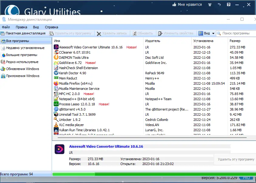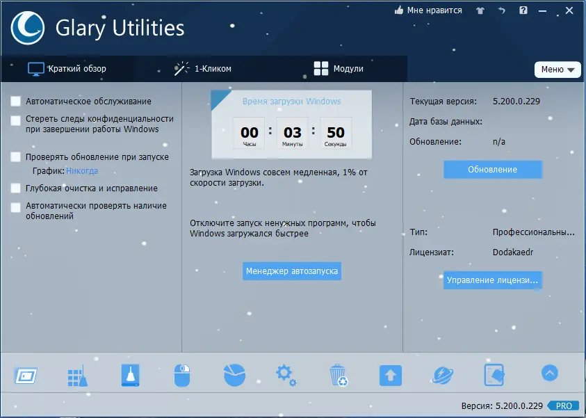 Glary Utilities — комплексная утилита для тонкой настройки и ускорения работы операционной системы, обеспечивающая очистку дисков, реестра, управление автозагрузкой и восстановление удалённых файлов. Программа поддерживает широкий спектр инструментов, направленных на повышение стабильности и производительности ПК. С её помощью пользователь может эффективно управлять системными процессами и поддерживать компьютер в идеальном состоянии.