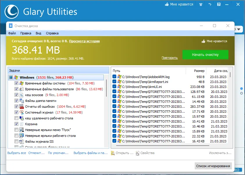 Работа с Glary Utilities
