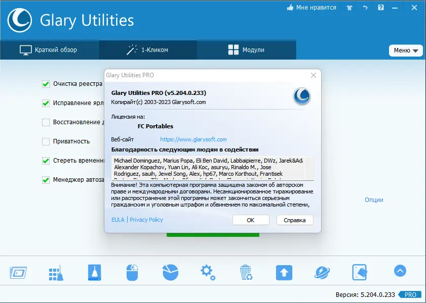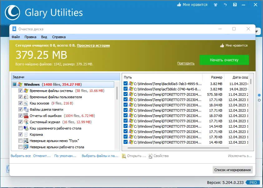 Работа с Glary Utilities