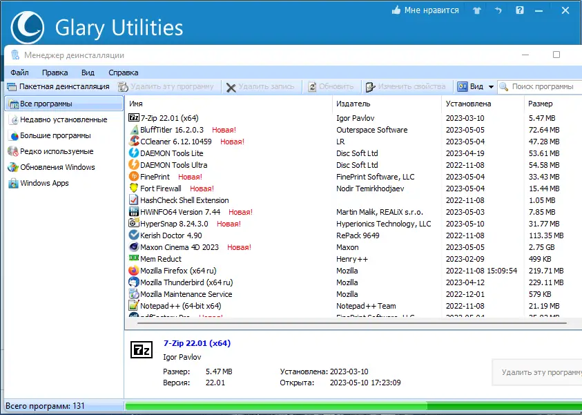 Glary Utilities объединяет в себе функции десятков отдельных утилит, избавляя пользователя от необходимости устанавливать множество программ для обслуживания системы.
