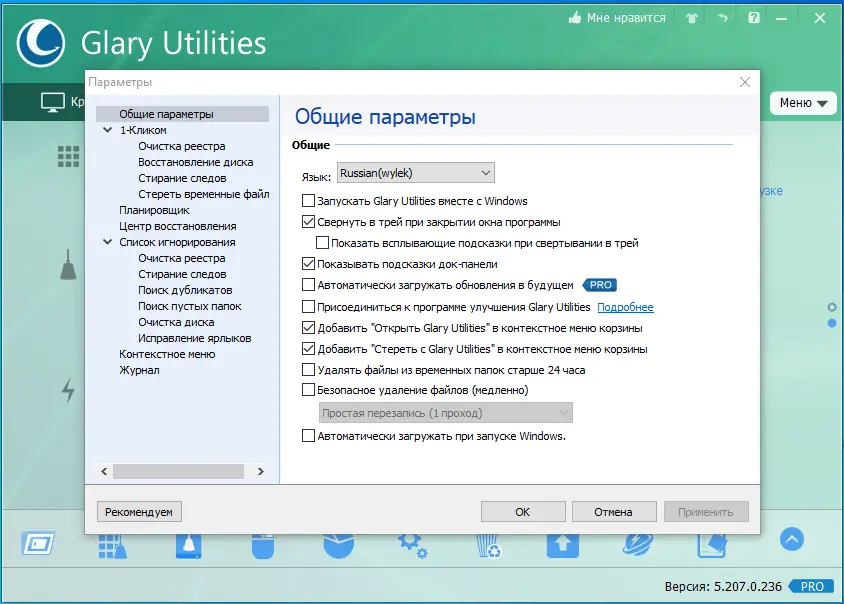 Работа с Glary Utilities