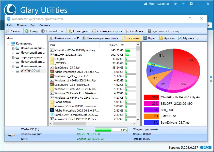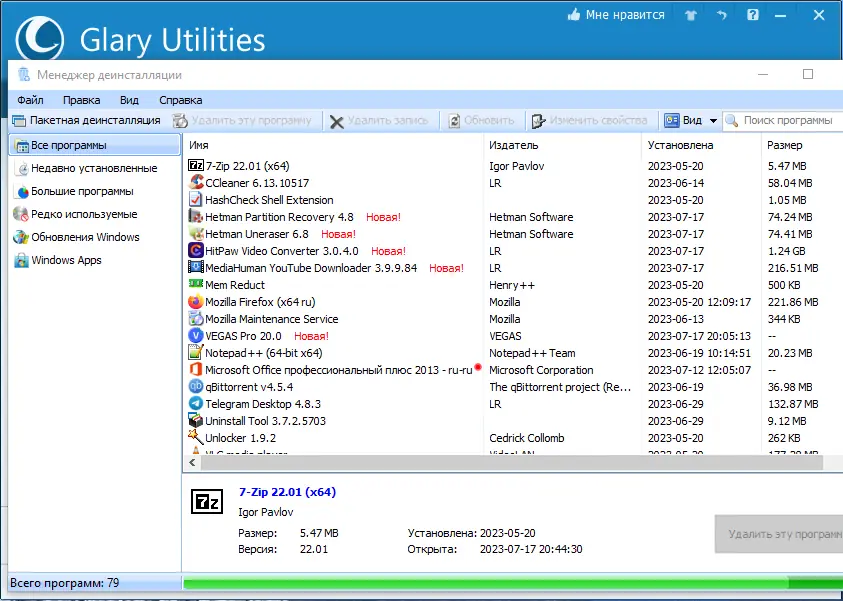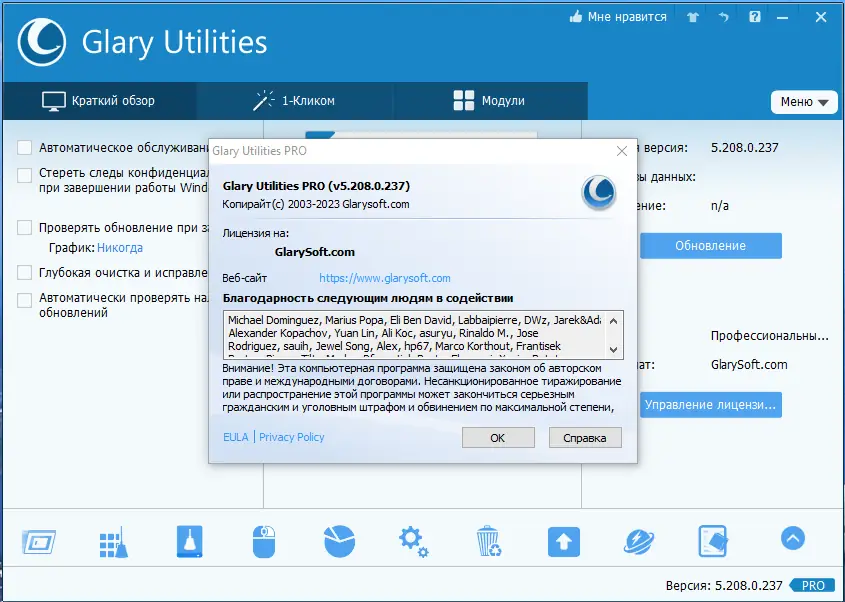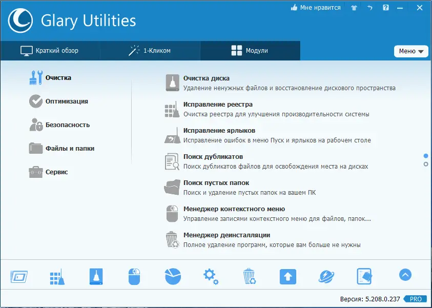 Glary Utilities сочетает в себе простоту использования и профессиональный уровень системного обслуживания.