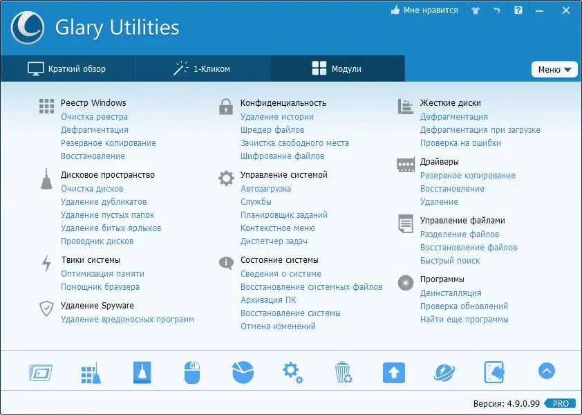 Glary Utilities — многофункциональный инструмент для оптимизации и обслуживания операционной системы Windows. Программа объединяет более двадцати утилит, направленных на очистку дисков, реестра, управление автозагрузкой и защиту конфиденциальных данных. С её помощью пользователь может значительно повысить стабильность и скорость работы компьютера.