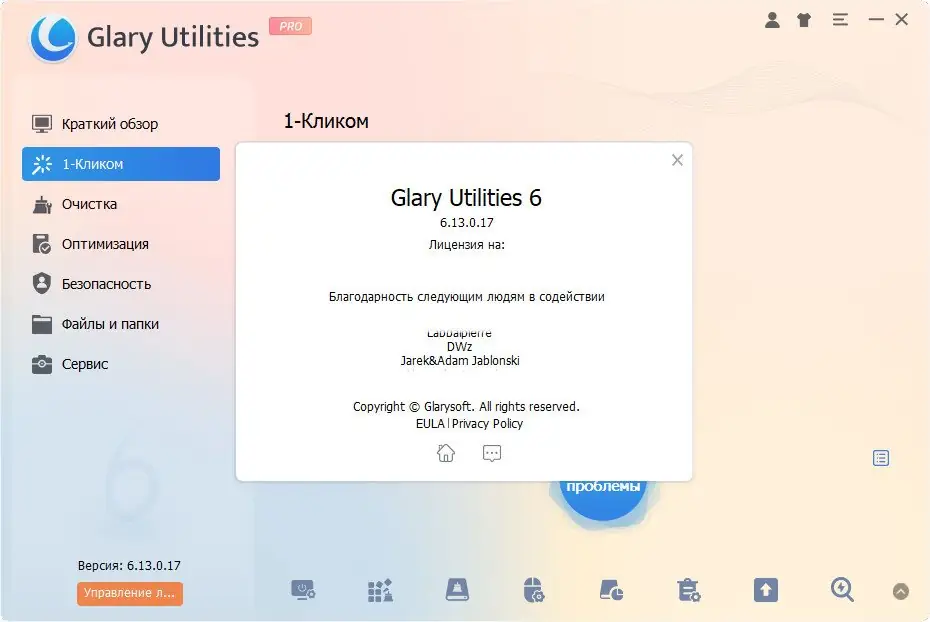 Работа с Glary Utilities