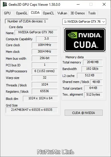 - Оценка совместимости с технологией NVIDIA CUDA и определение версии архитектуры.