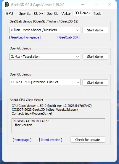 GPU Caps Viewer — это информационная утилита, предназначенная для детального анализа характеристик видеокарты и тестирования возможностей графического процессора. Программа предоставляет данные об OpenGL, OpenCL и CUDA, позволяет проводить тесты совместимости и отслеживать параметры GPU в режиме реального времени. Она подходит как для обычных пользователей, так и для специалистов, которым необходимо получить полную техническую информацию о графической подсистеме.