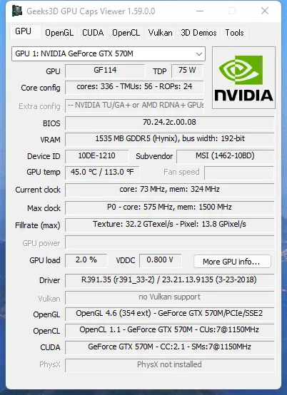 GPU Caps Viewer — это системная утилита, ориентированная на диагностику и мониторинг графических адаптеров. Она определяет установленные в системе видеокарты и отображает исчерпывающие сведения об их аппаратных и программных возможностях. Утилита поддерживает широкий спектр технологий, включая современные расширения OpenGL и OpenCL, а также предоставляет доступ к данным о поддержке NVIDIA CUDA. Встроенный мониторинг позволяет отслеживать ключевые параметры, такие как температура, загрузка GPU и скорость вращения вентиляторов.