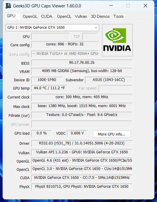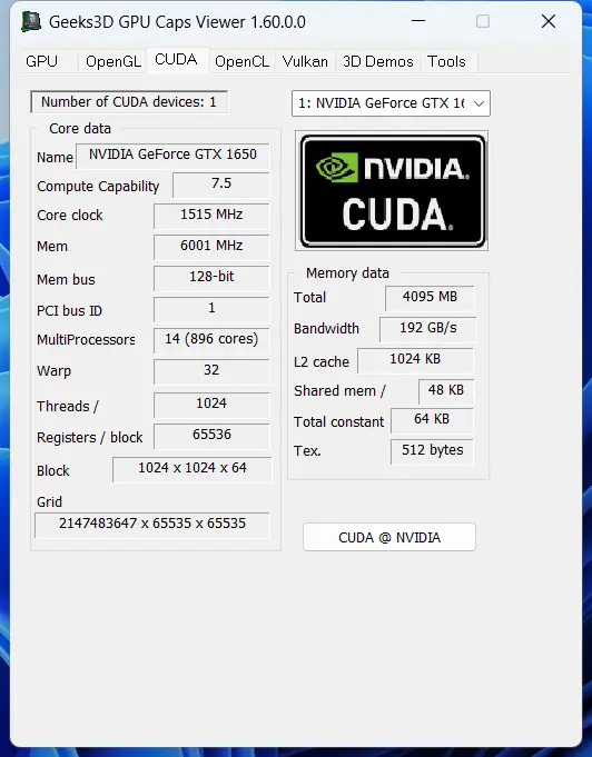 GPU Caps Viewer — это легковесная утилита для диагностики и мониторинга видеокарт, предоставляющая детальную информацию о возможностях графических адаптеров, поддержке графических API и текущем состоянии GPU. Программа позволяет проверить спецификации OpenGL, OpenCL и CUDA, а также отслеживать температуру, загрузку и другие параметры видеокарт в режиме реального времени.