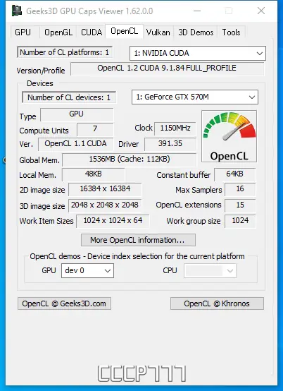 - Предоставляет сведения о поддержке OpenCL и CUDA, что важно при работе с вычислительными задачами на GPU.