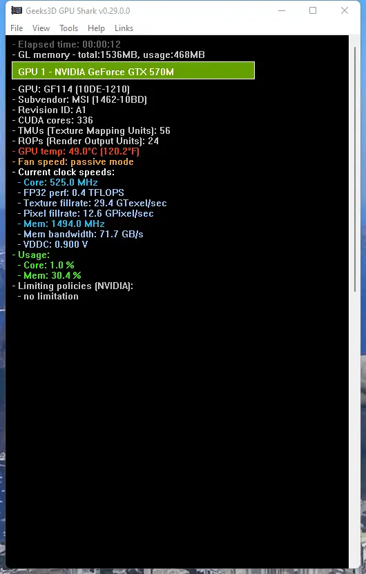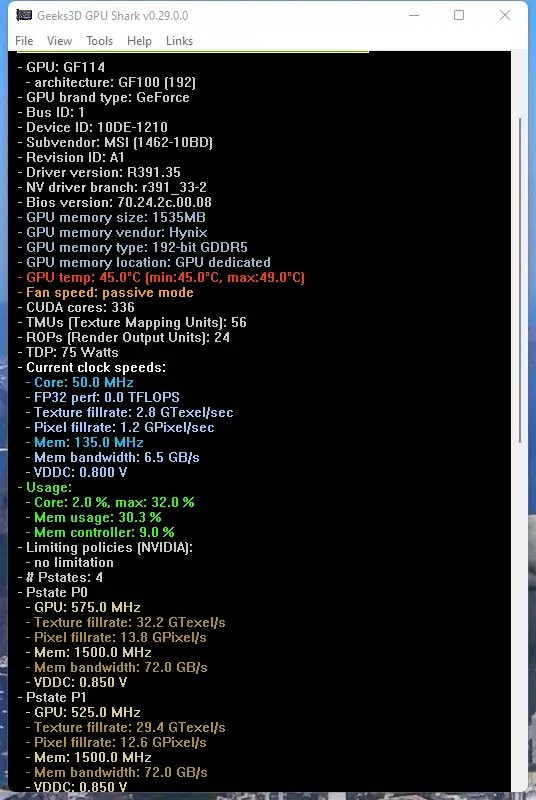 GPU Shark — это компактная утилита для мониторинга видеокарт, отображающая ключевые параметры работы графического процессора в реальном времени. Программа поддерживает устройства NVIDIA и AMD, предоставляя детальную информацию о температуре, частотах, загрузке и энергопотреблении.